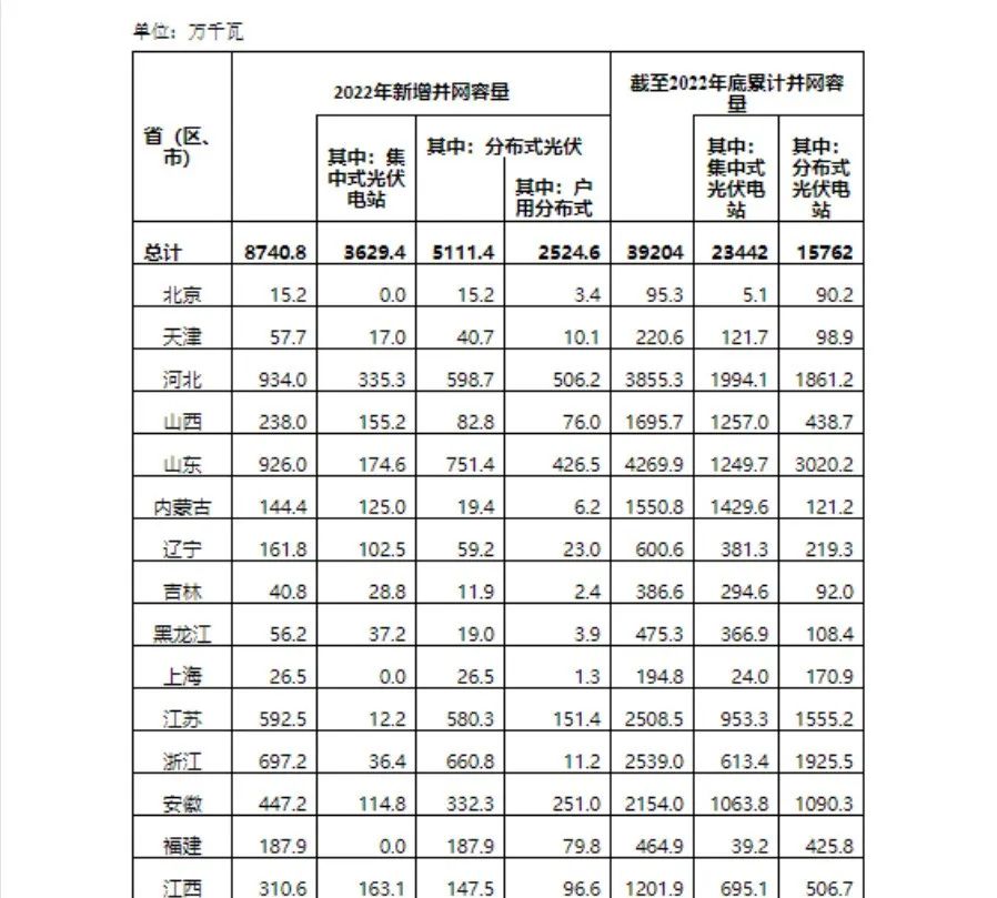 2月17日,能源局發布《2022年光伏發電建設運行情況》。